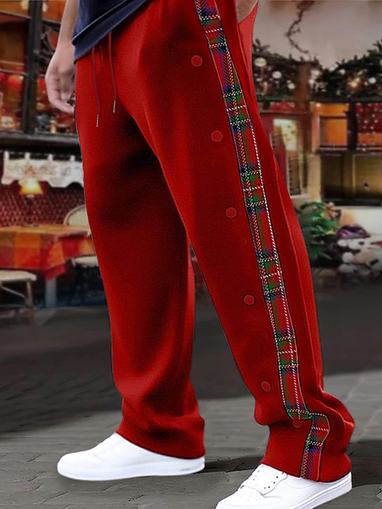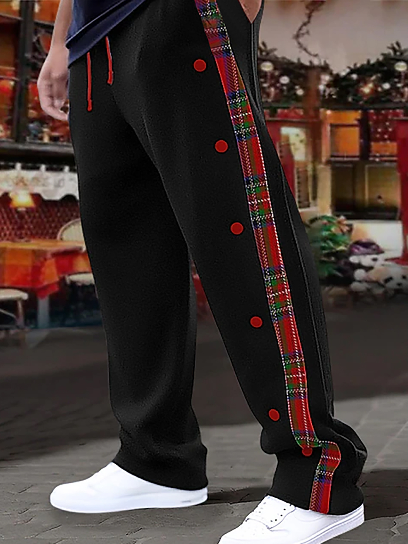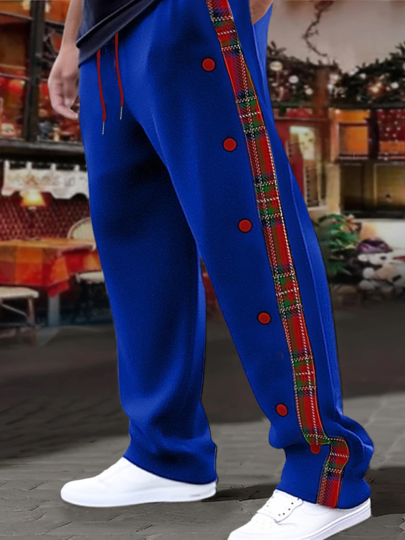 1pc Men'S Casual Wide-Leg Sweatpants with Geometric Plaid Panels, Elastic Waistband with Drawstrings, Pockets, Knit Polyester Fabric, Slight Stretch, All-Season Comfort Fit Trousers