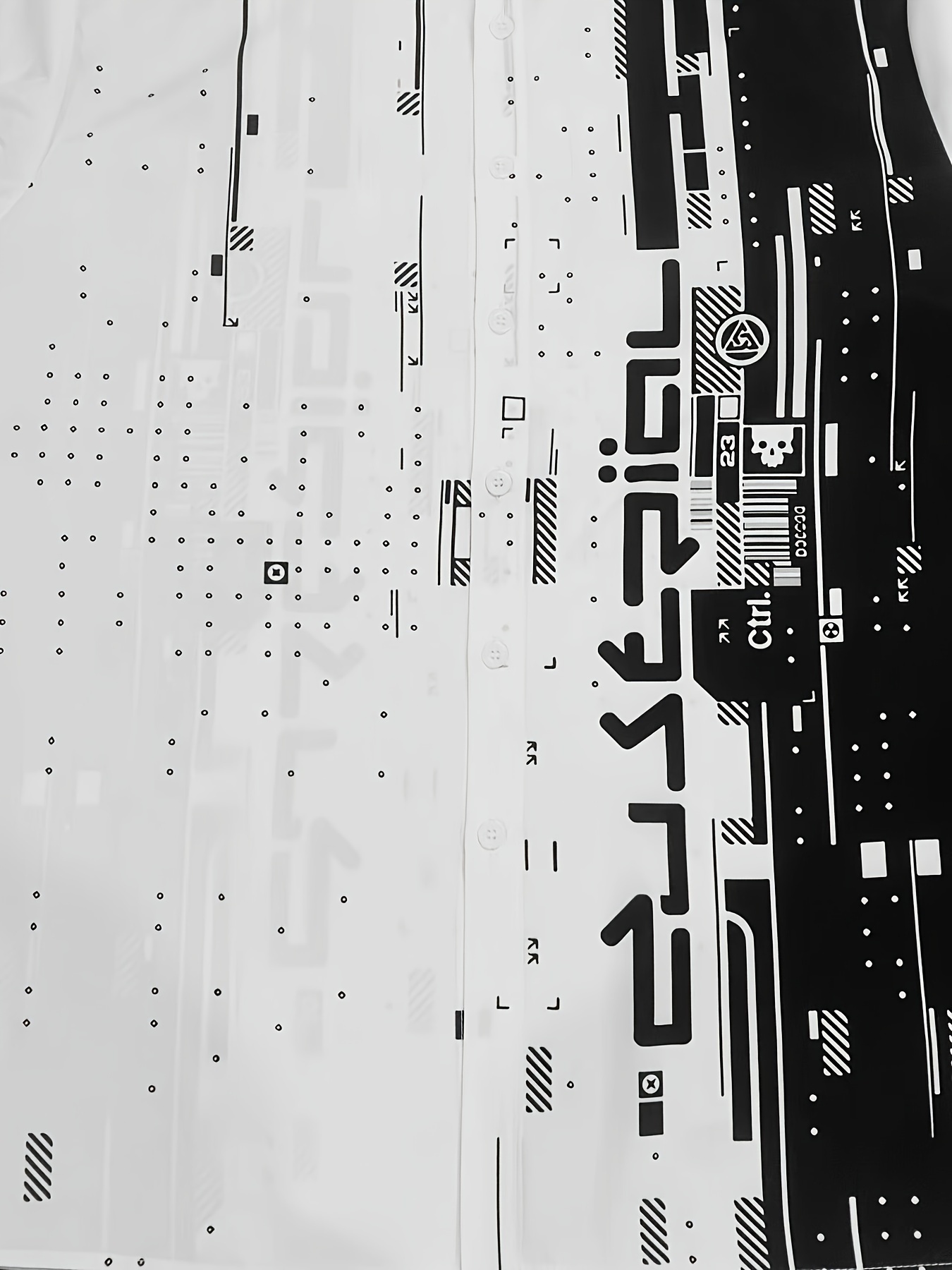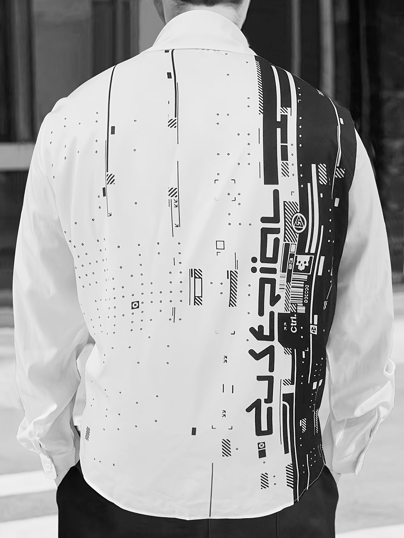 Men'S Plus Size Casual Button-Down Shirt with Geometric Print, Polyester Woven Fabric, Spring/Fall Collection, Adult Unisex Fashion with Regular Fit and Notched Collar