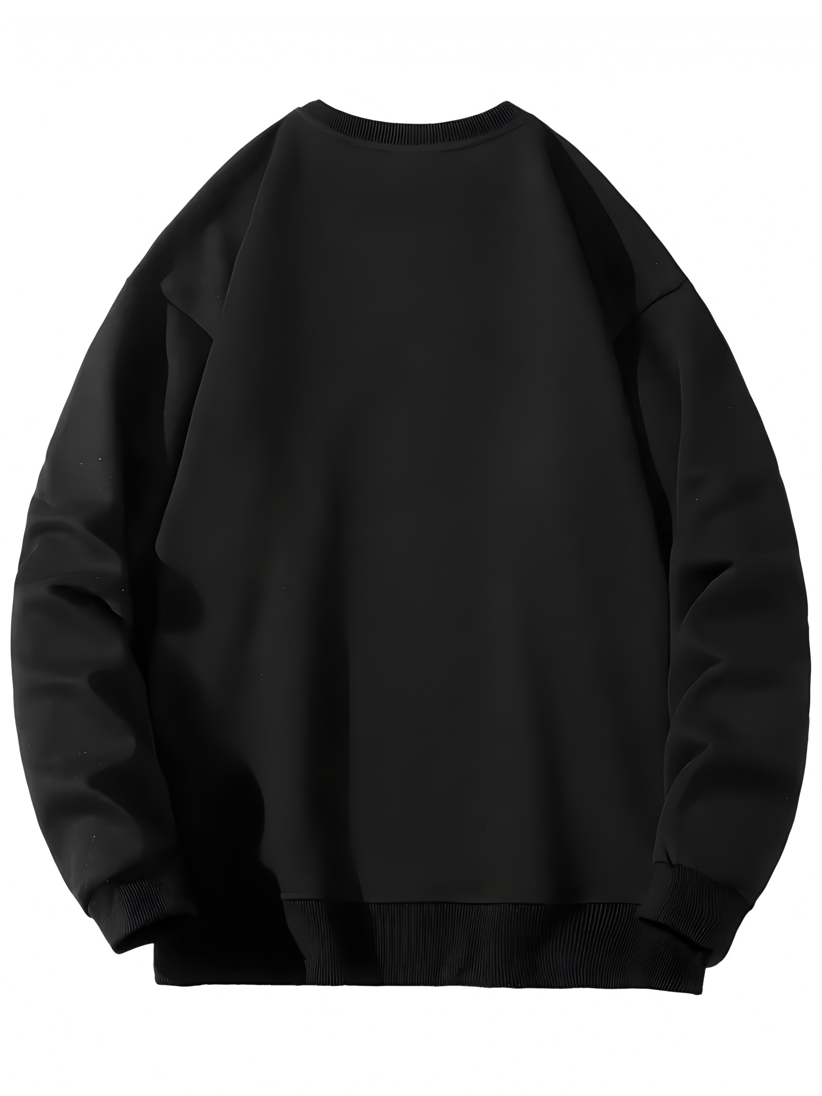 Men's Casual Fleece-Lined Sweatshirt with Geometric Print - Cotton Blend, Round Neck Pullover for Fall & Winter, PLUS SIZE