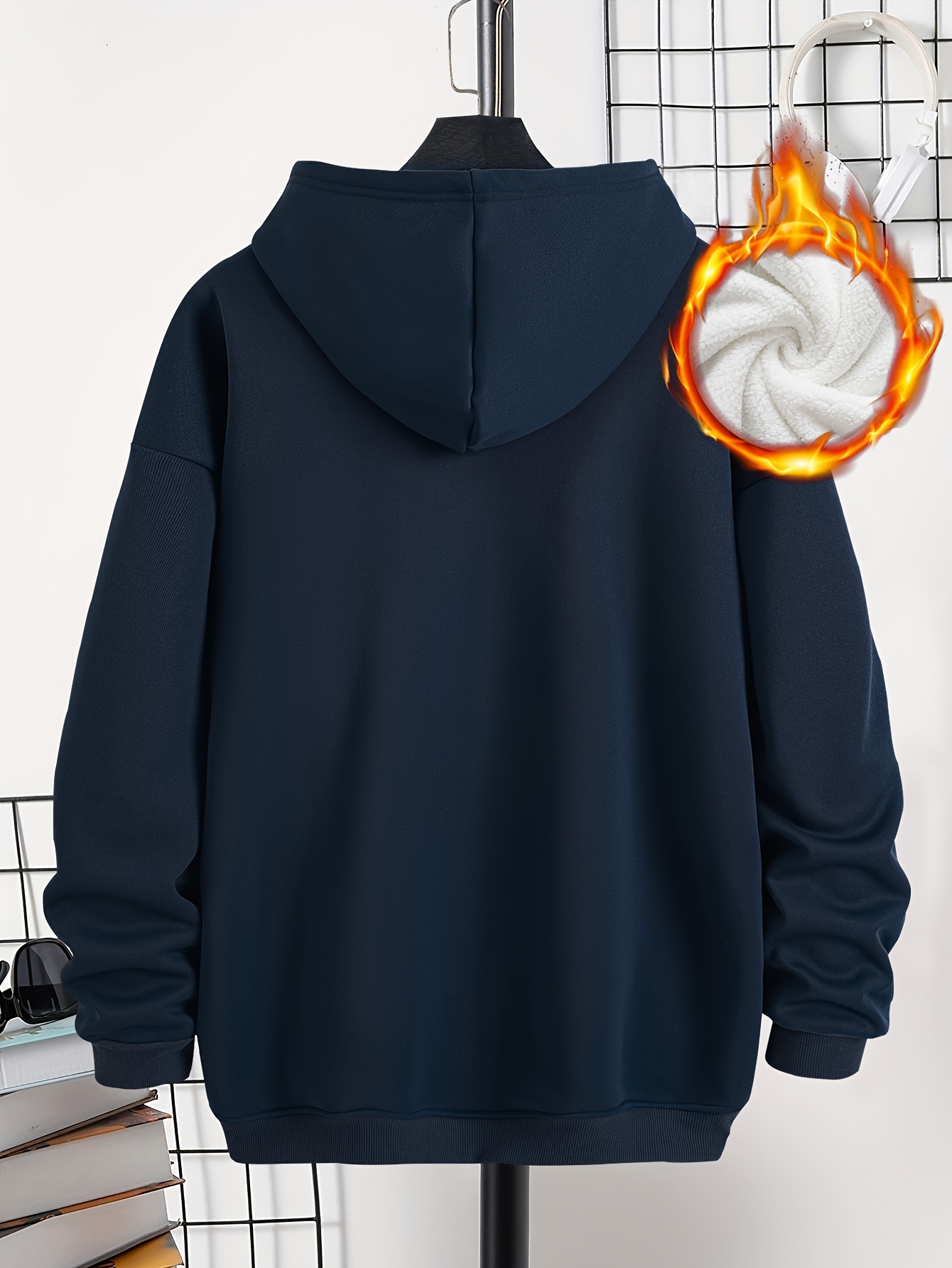 Men's Plus Size Hoodie Sweatshirt with Fleece Lined Hood, Casual Solid Color Polyester Knit Fabric, Unisex-Adult Hooded Sweatshirt