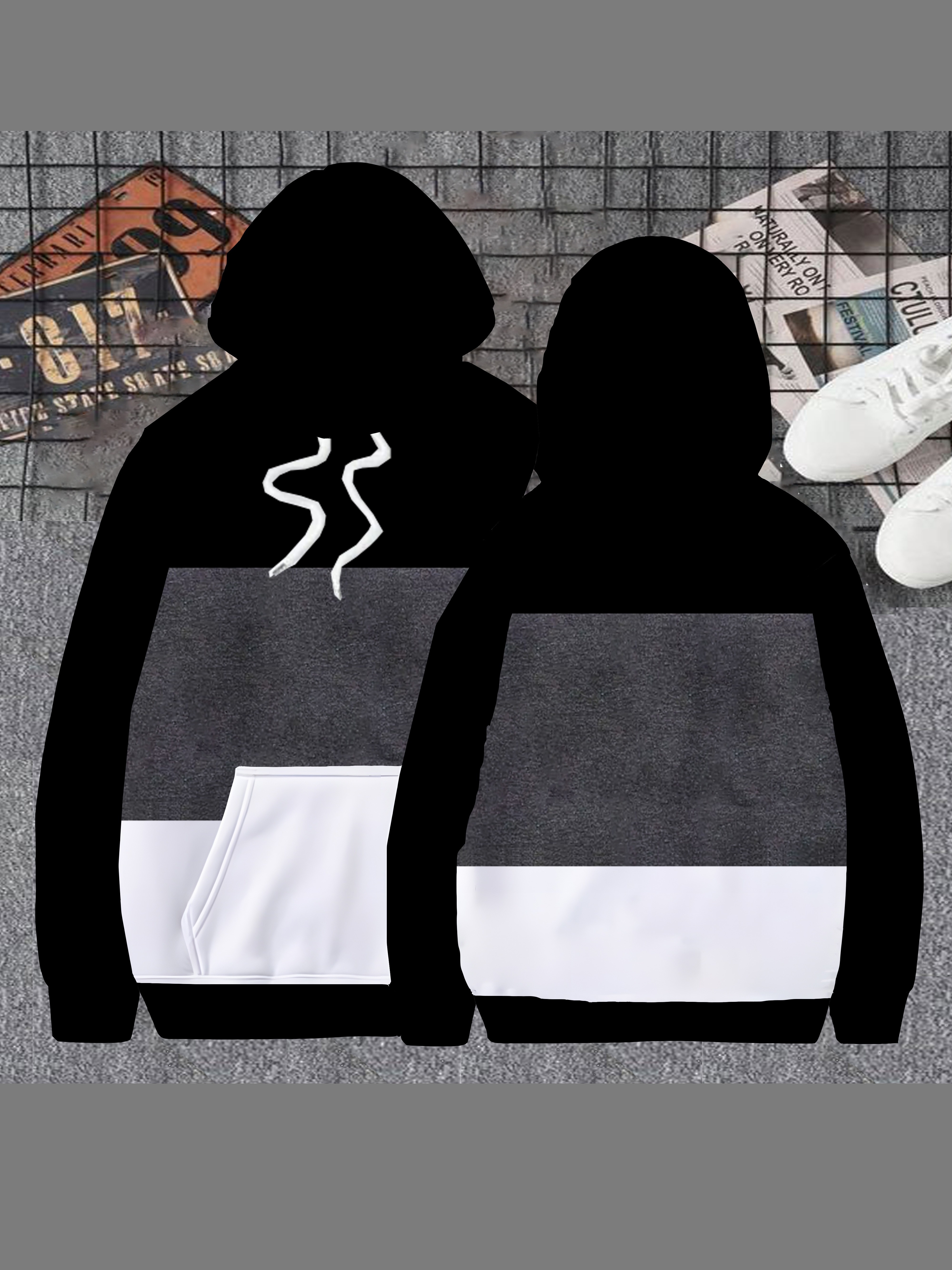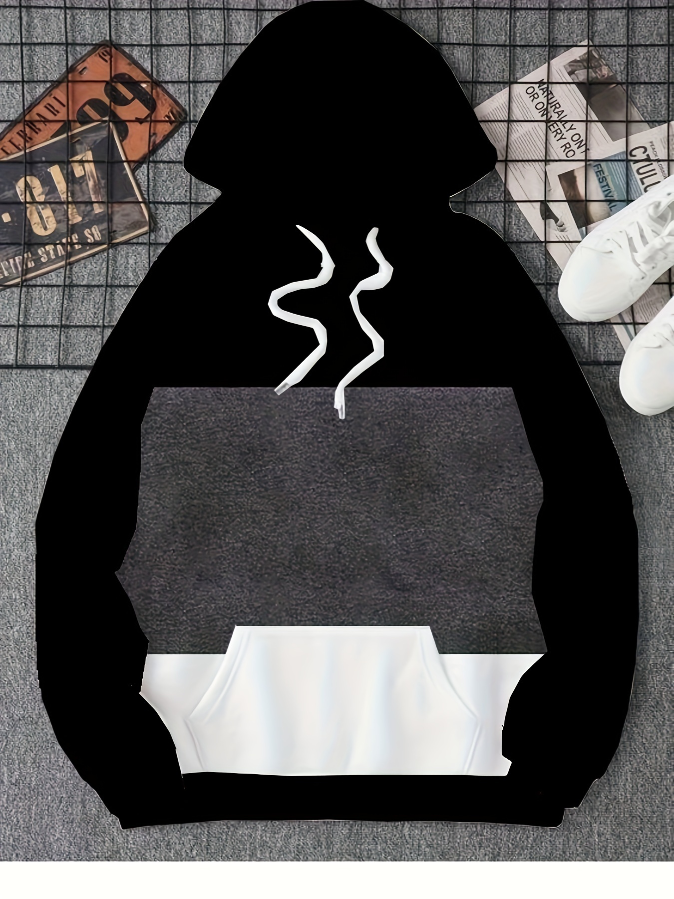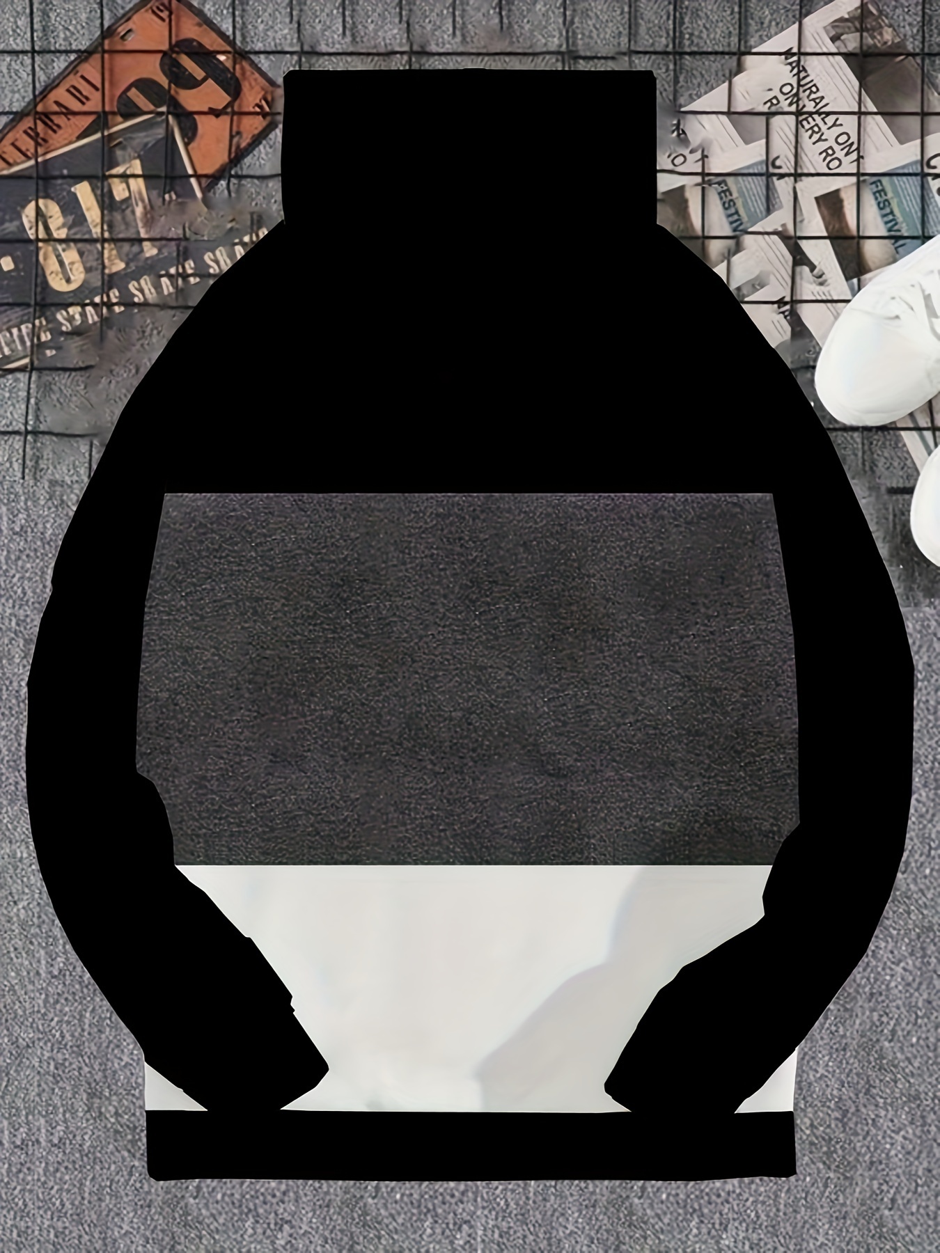 Men's Striped Hoodie with 3D Print - Casual & Sporty Pullover, Polyester Blend, Machine Washable, PLUS SIZE