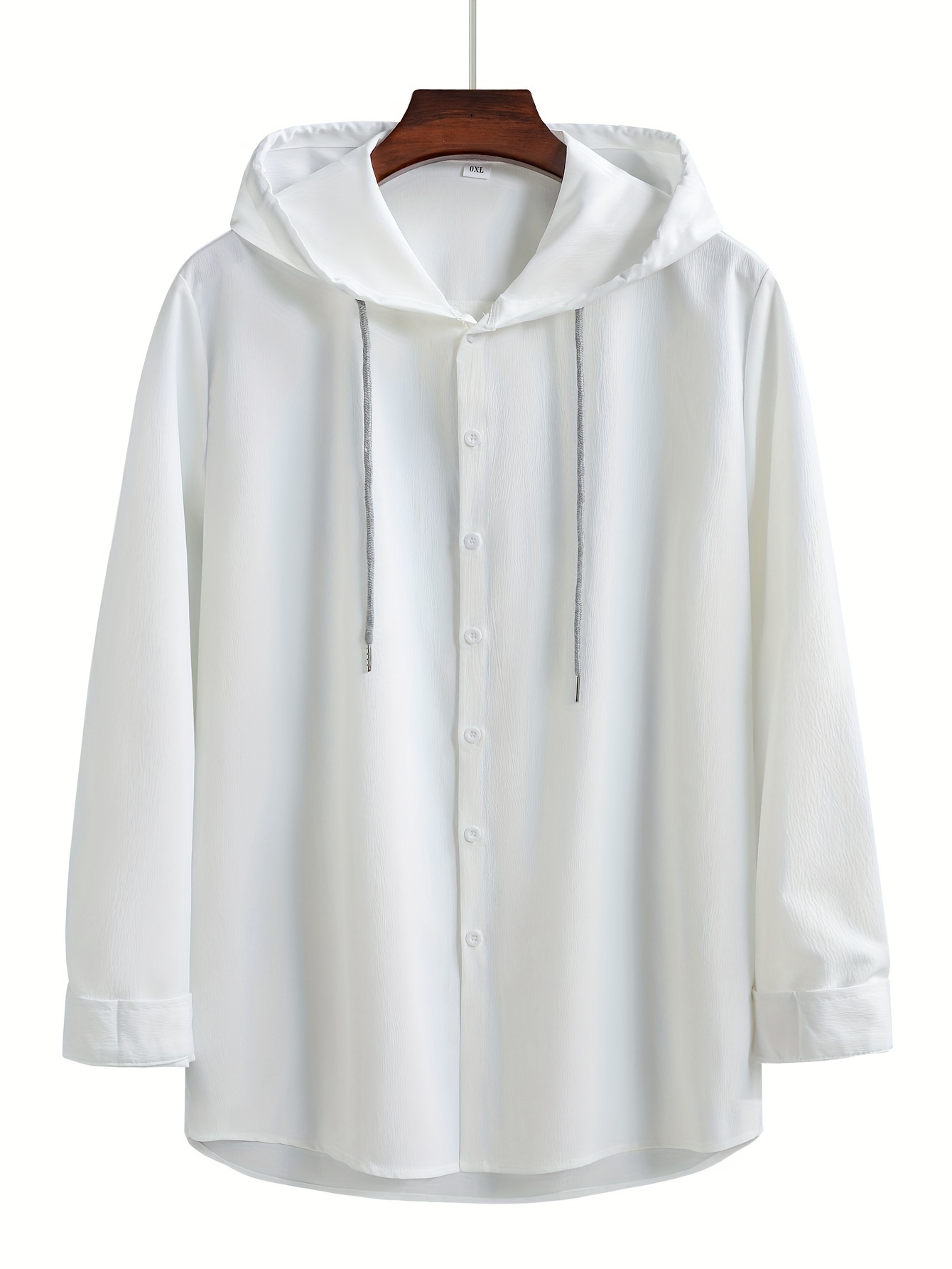 Men's Casual Hooded Shirt - Polyester, Button-Up, Solid Color, Perfect for Spring/Fall, PLUS SIZE
