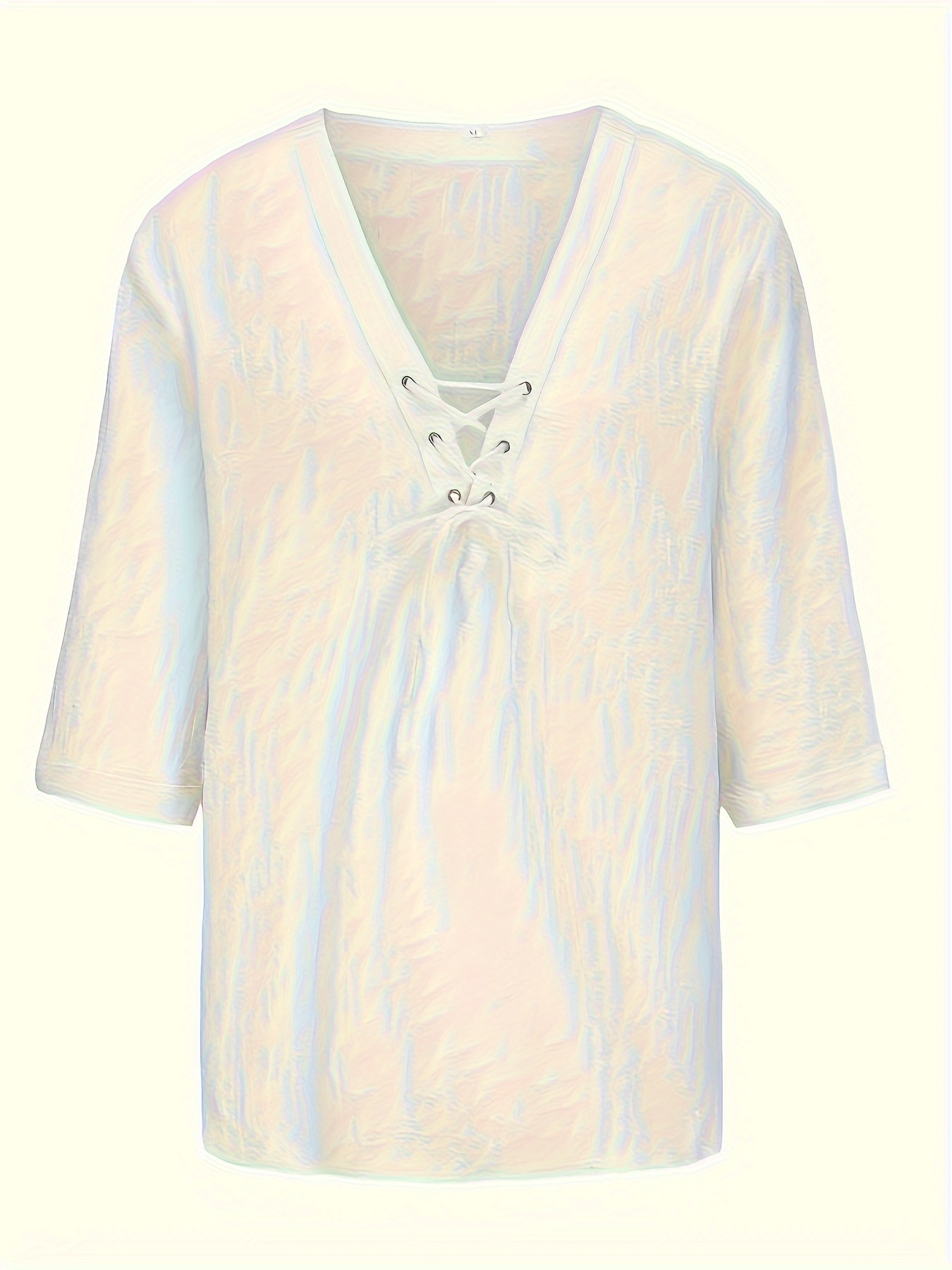 Men's Casual V-Neck Long Sleeve T-Shirt with Drawstring - Breathable Polyester, Machine Washable - Perfect for Spring/Fall, PLUS SIZE