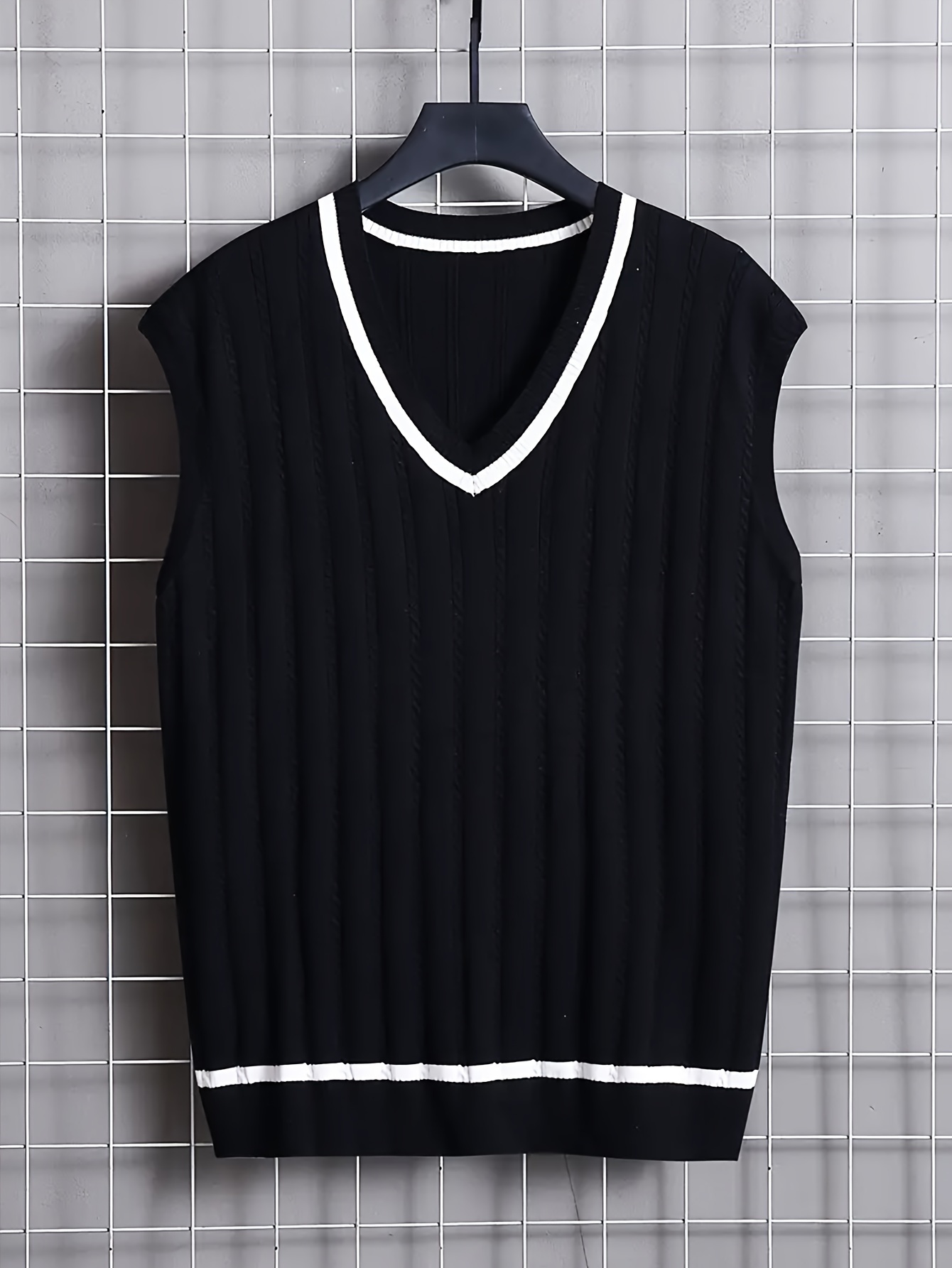 Men's Breathable V-neck Sleeveless Knitted Vest For Casual Daily Wear, Spring And Fall