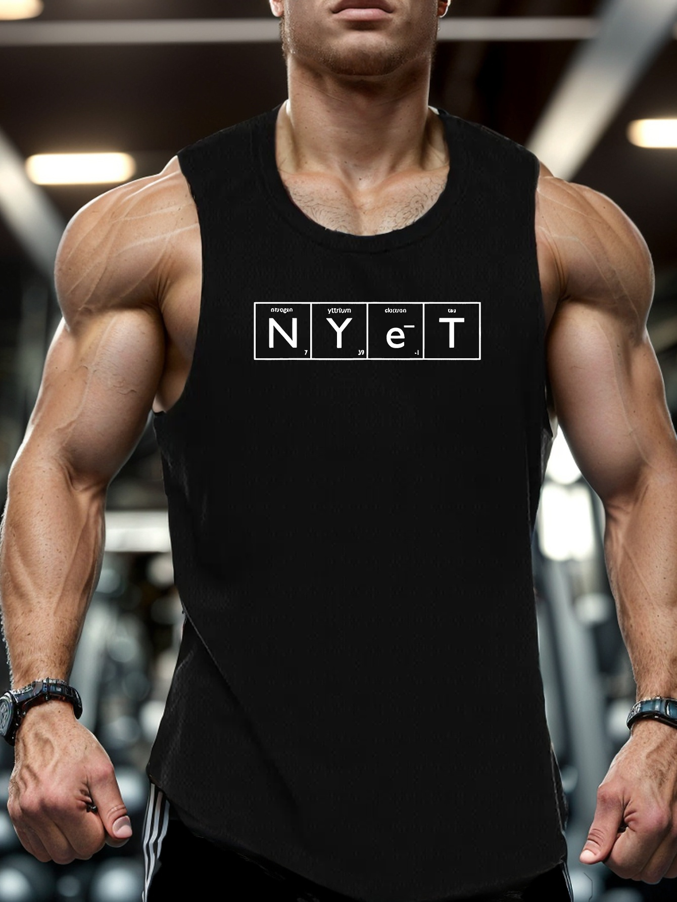 Men's Casual Black Tank Top - Polyester Knit, Geometric Design, Machine Washable, Summer Workout Tank for Gym & Fitness