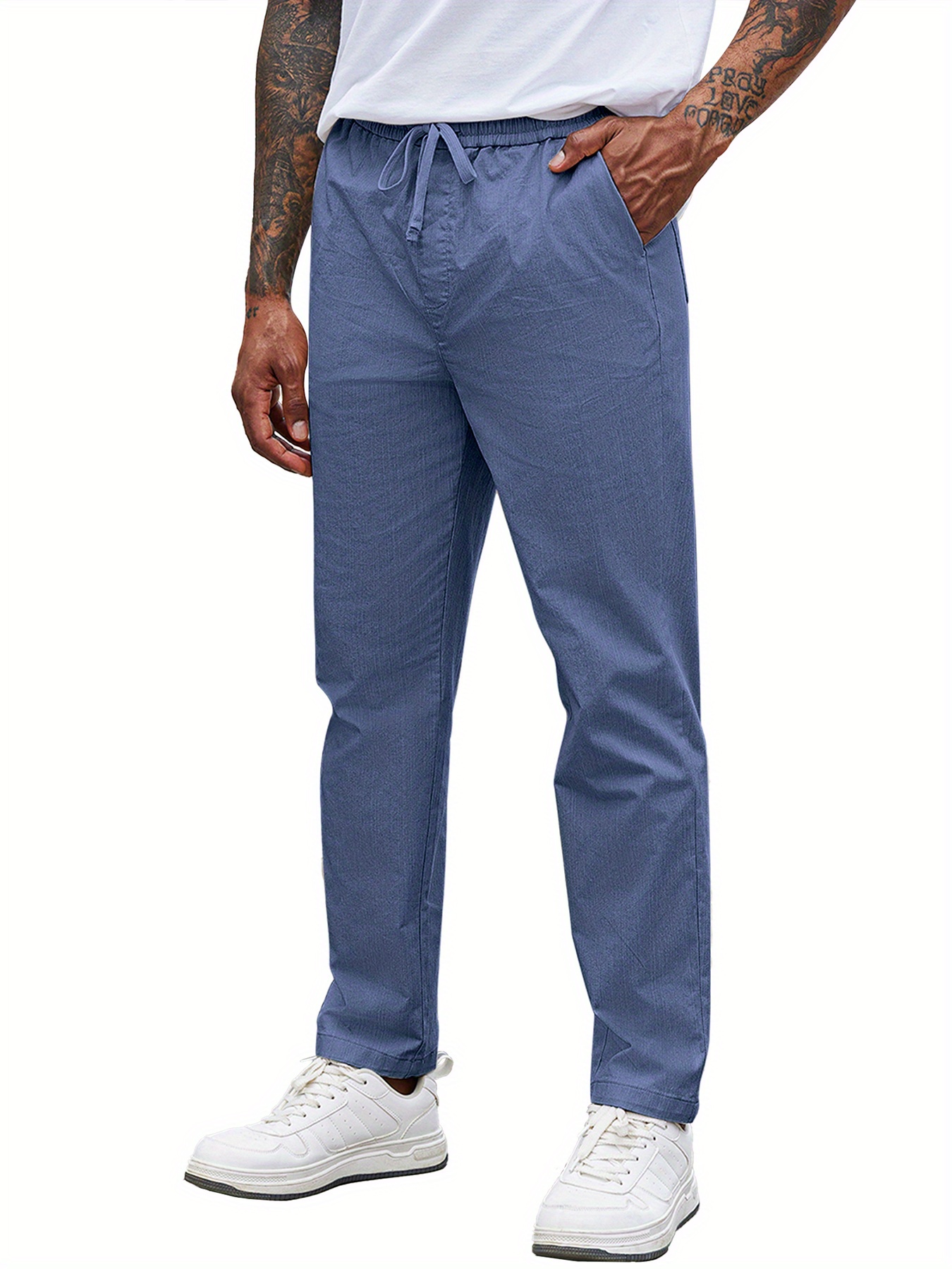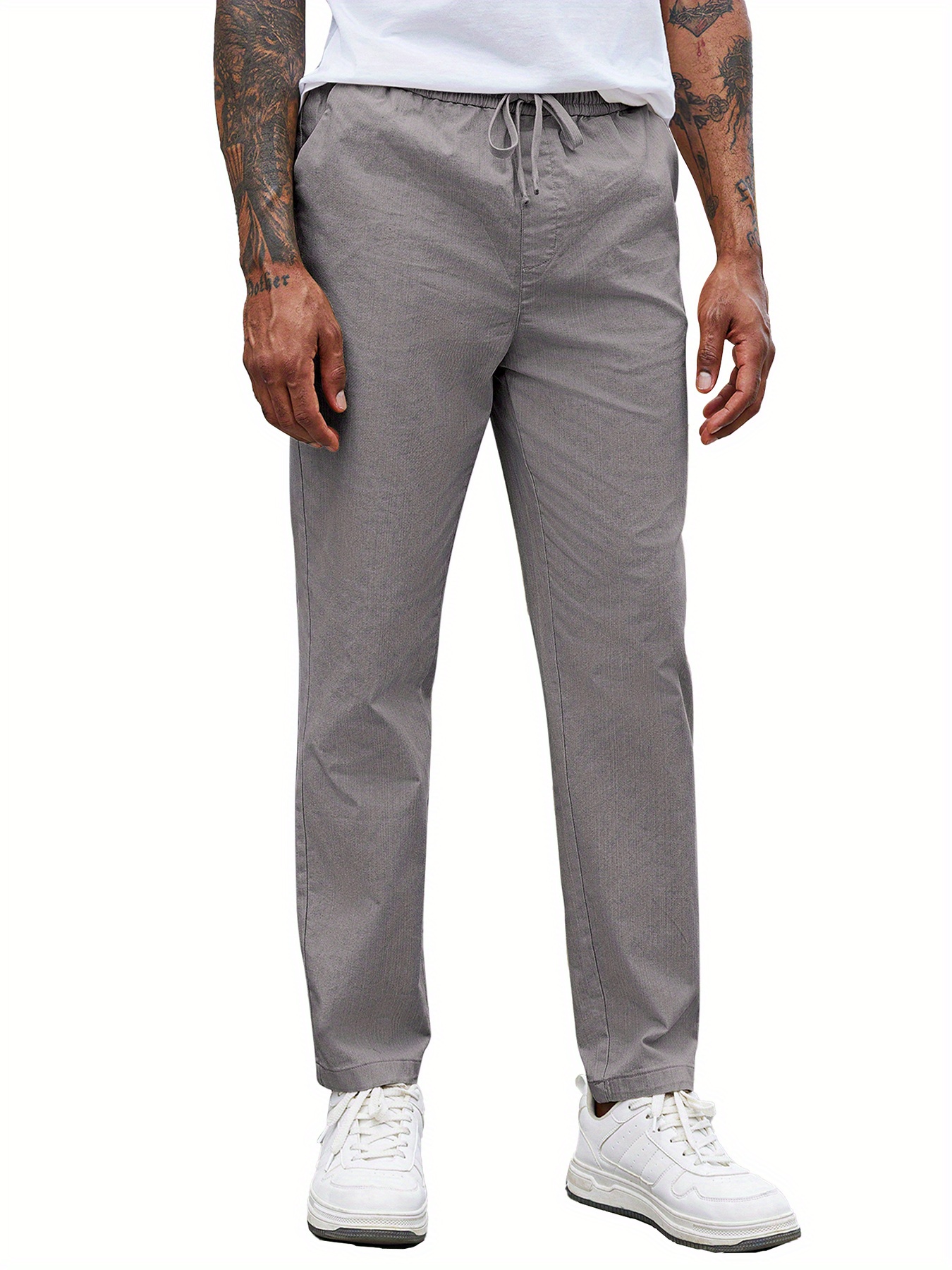 Men'S Cotton Blend Jogger Pants, Casual Drawstring Trousers, Skinny Fit, with Pockets, Slight Stretch, for All-Season Wear, Weekend Casual Style
